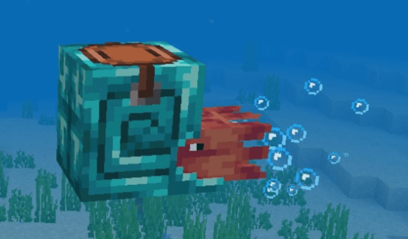 It can be tamed with pufferfish and ridden with a saddle, granting the new "Breath of the Nautilus" effect, allowing the player to breathe underwater while mounted.