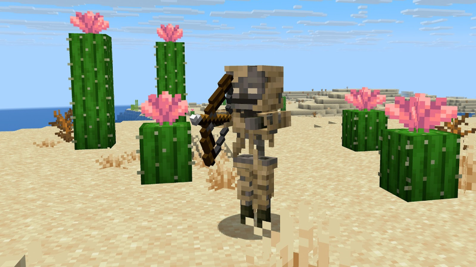 The Parched is a new Skeleton variant that spawns in Deserts, similarly to the Husk. In fact, it does not spawn in caves, but is limited to the surface during the night. Beware, though: it does not burn under sunlight.