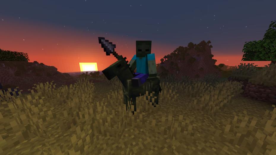 In the darkness, the Zombie Horse can now appear just like any other undead mob, and is mounted by a Zombie wielding a Spear.