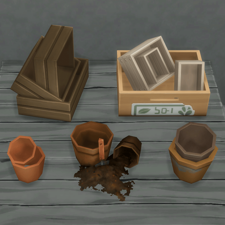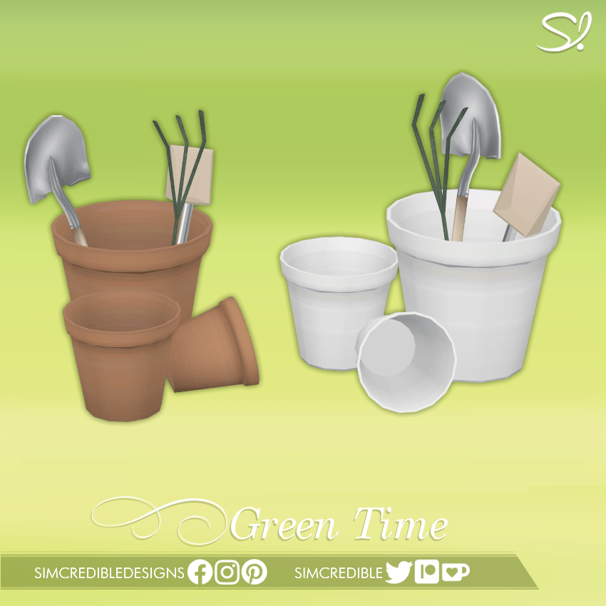 Some cute little terra cotta flower pots with gardening tools in them. Your sim has been planting flowers, haven't they?! These items are part of a collection, so make sure to check the description if you want to see more.