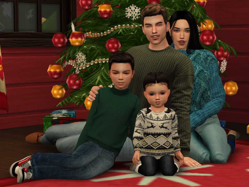 Stylish holiday-themed clothing sets to make your Sims look their festive best for Christmas celebrations.