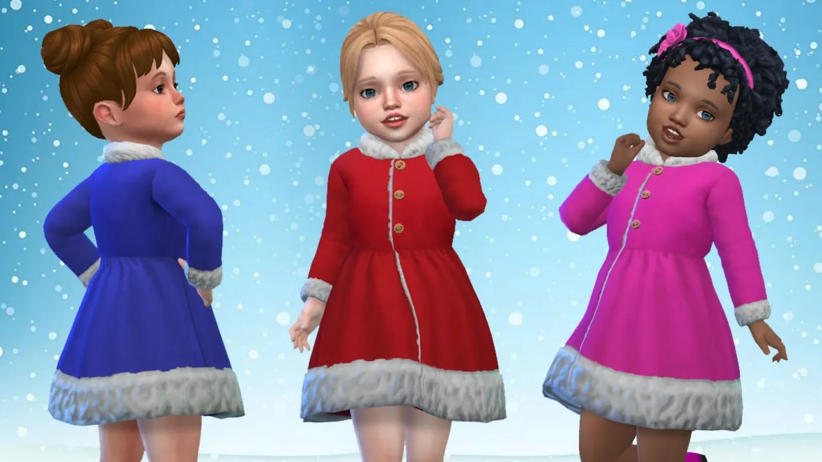 A warm, winter-themed coat to outfit your Sims in cozy festive style - ideal for winter weather or holiday outings.