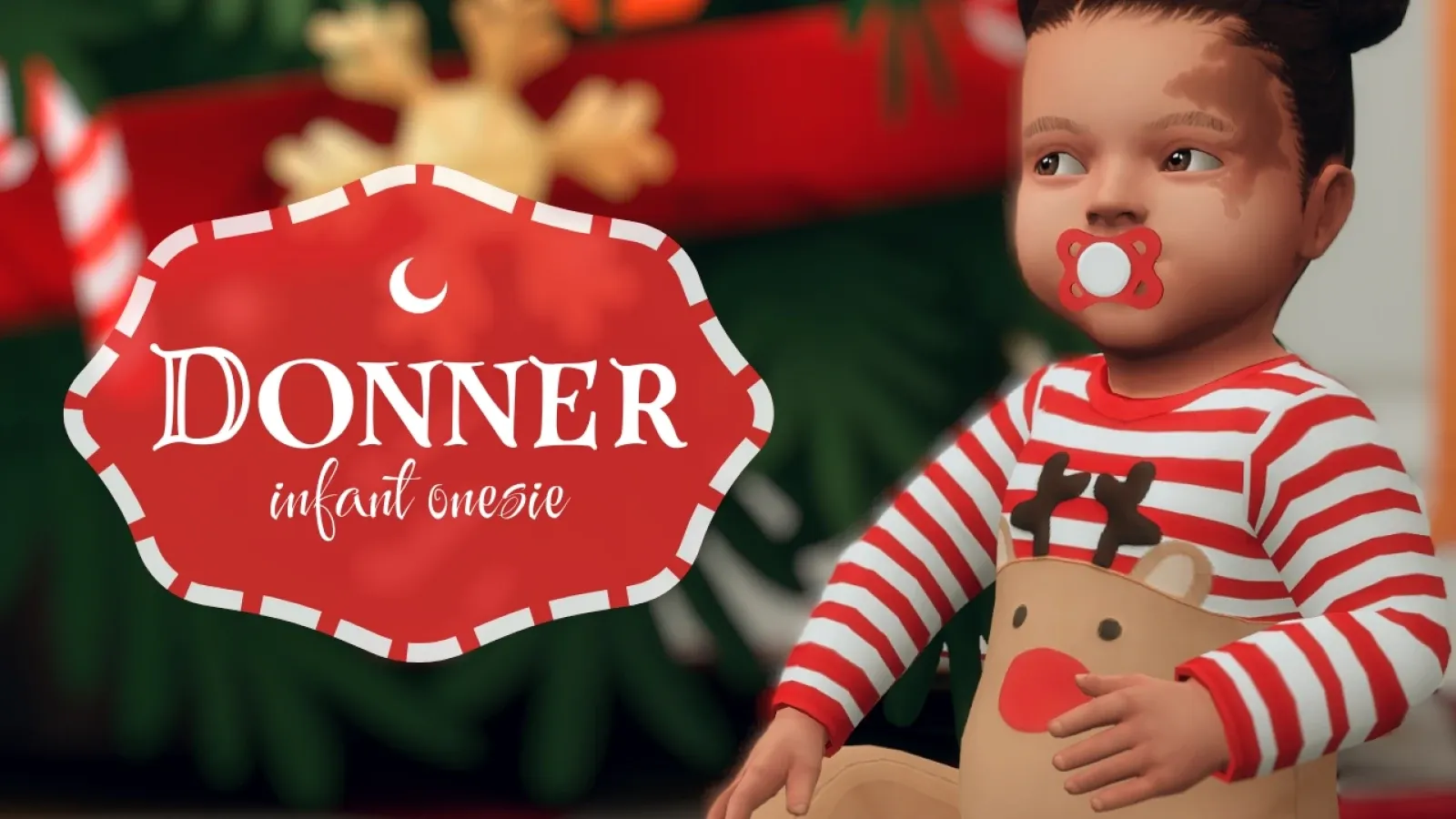 A cozy, festive onesie for baby Sims, perfect for holiday-themed households and winter photos.