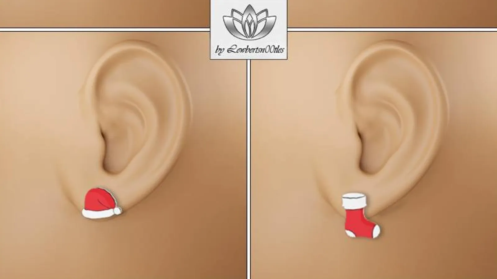 A set of holiday-themed stud earrings for Sims of any age - subtle, stylish festive detail.