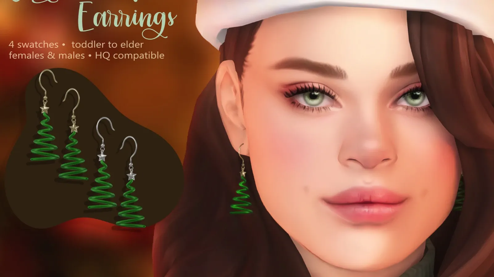 Cute seasonal earrings shaped like Christmas trees to add festive charm to your Sims’ looks.