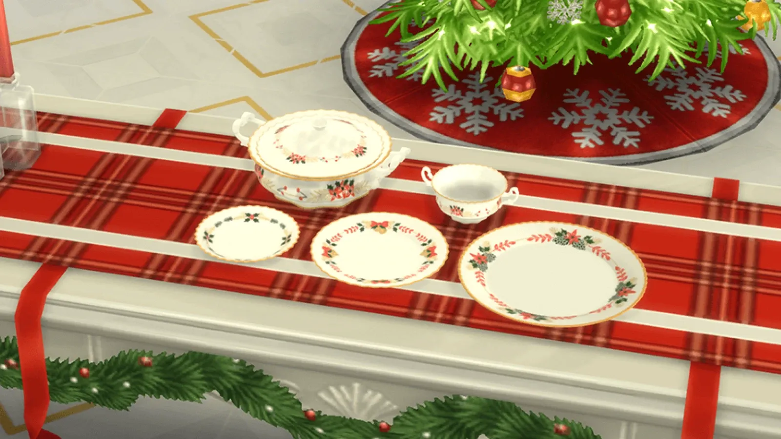 Holiday-themed plates, cups and table decorations to dress up your Sims’ dining table for a festive feast!