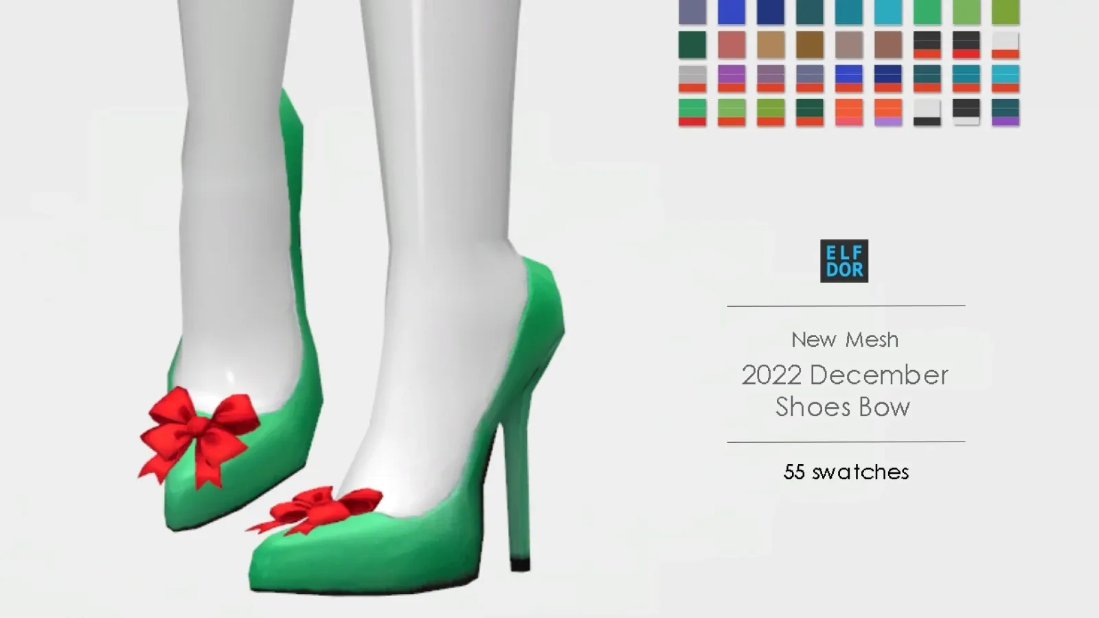 Festive shoes decorated with bows - a subtle but cute holiday touch for your Sims’ outfits.
