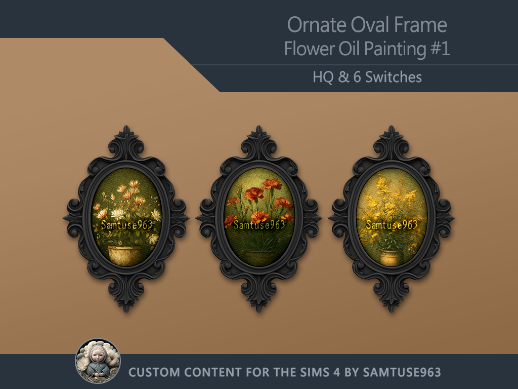 Ornate Oval Frame Flower Oil Painting by samtuse963