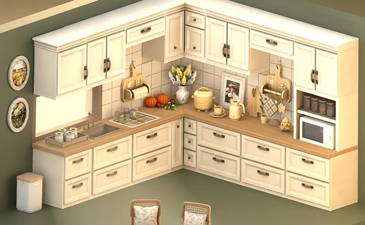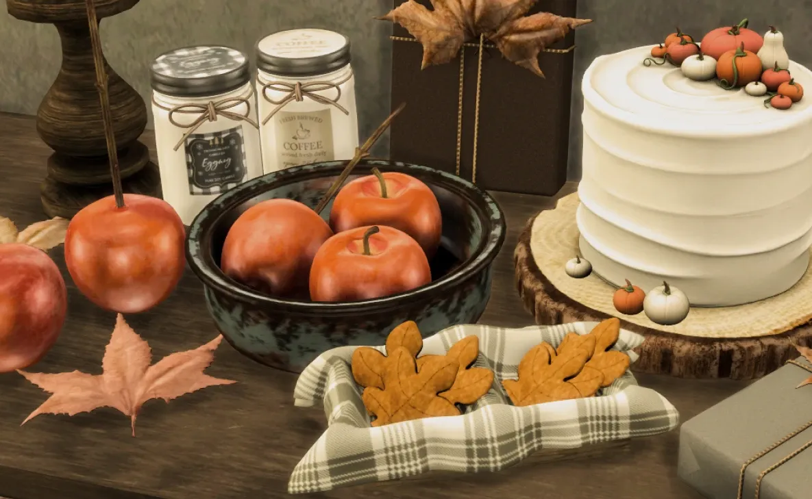 Use this kitchen Build/Buy decor set in your Sims' homes to create an autumn-ready kitchen.