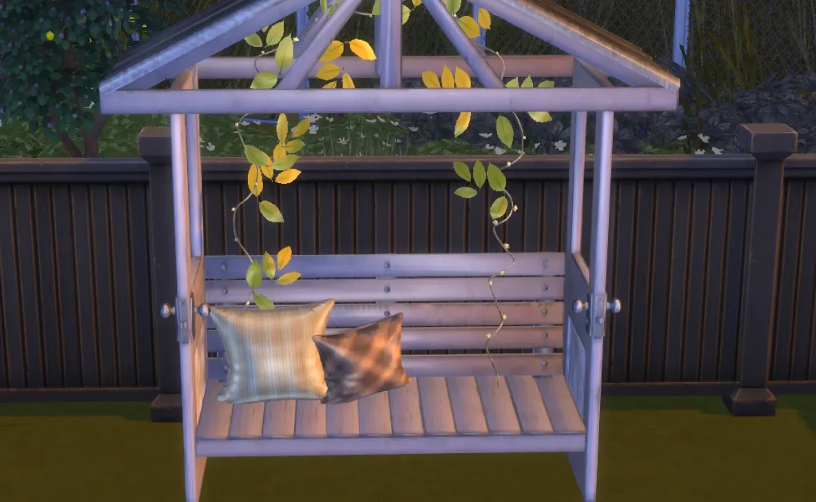 Cozy up your Sims’ outdoor spaces with a charming functional bench complete with string lights and decorative leaves.