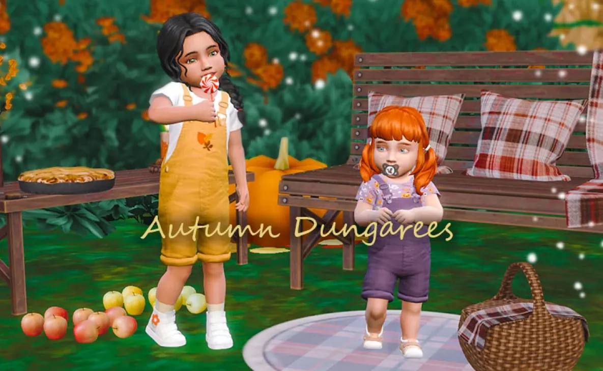 The cutest dungarees for infants and toddlers, featuring a variety of autumn-themed patterns ideal for this season.