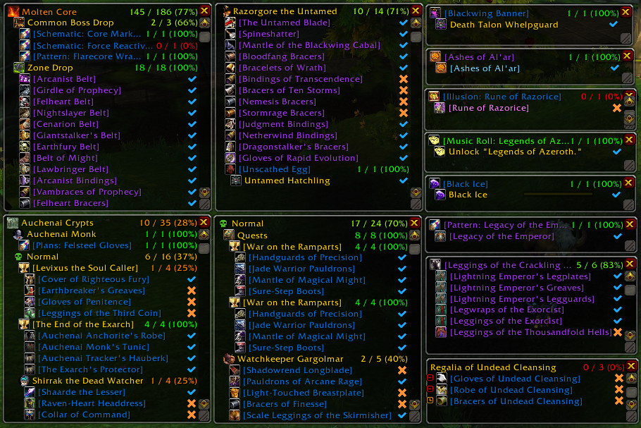 For those who are looking to collect all the new transmogs, toys, pets, and mounts. This AddOn will list “All The Things” that you know and do not know yet to collect! To "All the Things AddOn by Crieve.